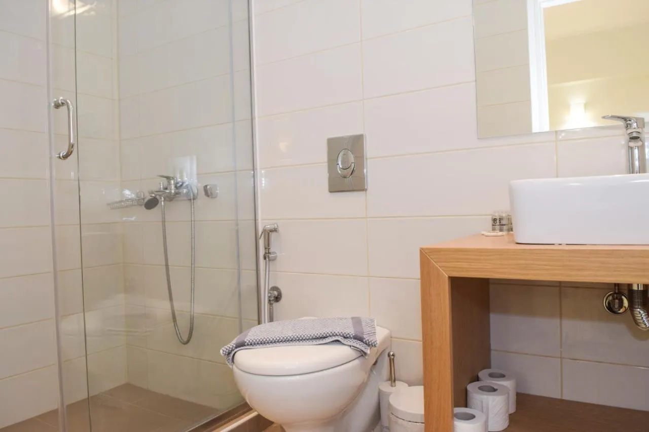 Bucătărie: Mașină de cafea Frigider Cană fierbător General : Seif Pardoseală de gresie/marmură Intrare privată Încălzire Izolare fonică Aer condiţionat Media/Tehnologie: TV cu ecran plat TV Exterior: Mobilier de grădină Patio Baie: Prosoape Uscător de păr Toaletă Duş Hârtie igienică Baie privată Facilităţile camerei: Priză lângă pat Mâncăruri și băuturi: Aparat pentru prepararea de ceai/cafea Dormitor: Lenjerie de pat Garderobă sau dulap Distanțare fizică: Aer condiționat individual pentru fiecare cameră de la proprietate Curățenie și dezinfectare: Dezinfectant pentru mâini
