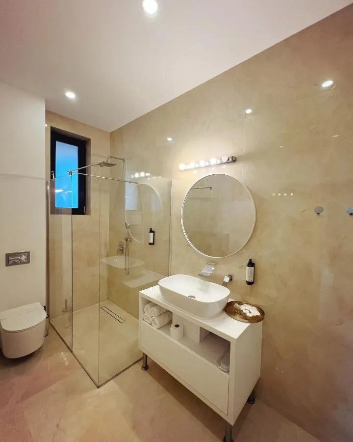 Accesibilitate: Etaje superioare accesibile doar pe scări Media/Tehnologie: TV cu ecran plat TV Serviciu de streaming (ex. Netflix) Exterior: Mobilier de grădină Balcon Piscină privată Zonă de luat masa în aer liber General : Ventilator Pardoseală de gresie/marmură Încălzire Plasă de ţânţari Aer condiţionat Baie: Prosoape Articole de toaletă gratuite Papuci de casă Uscător de păr Toaletă Duş Hârtie igienică Baie privată Zonă de living: Zonă de relaxare Facilităţile camerei: Priză lângă pat Mâncăruri și băuturi: Aparat pentru prepararea de ceai/cafea Minibar Vedere: Vedere la grădină Vedere la oraș Dormitor: Lenjerie de pat Bucătărie: Uscător de haine