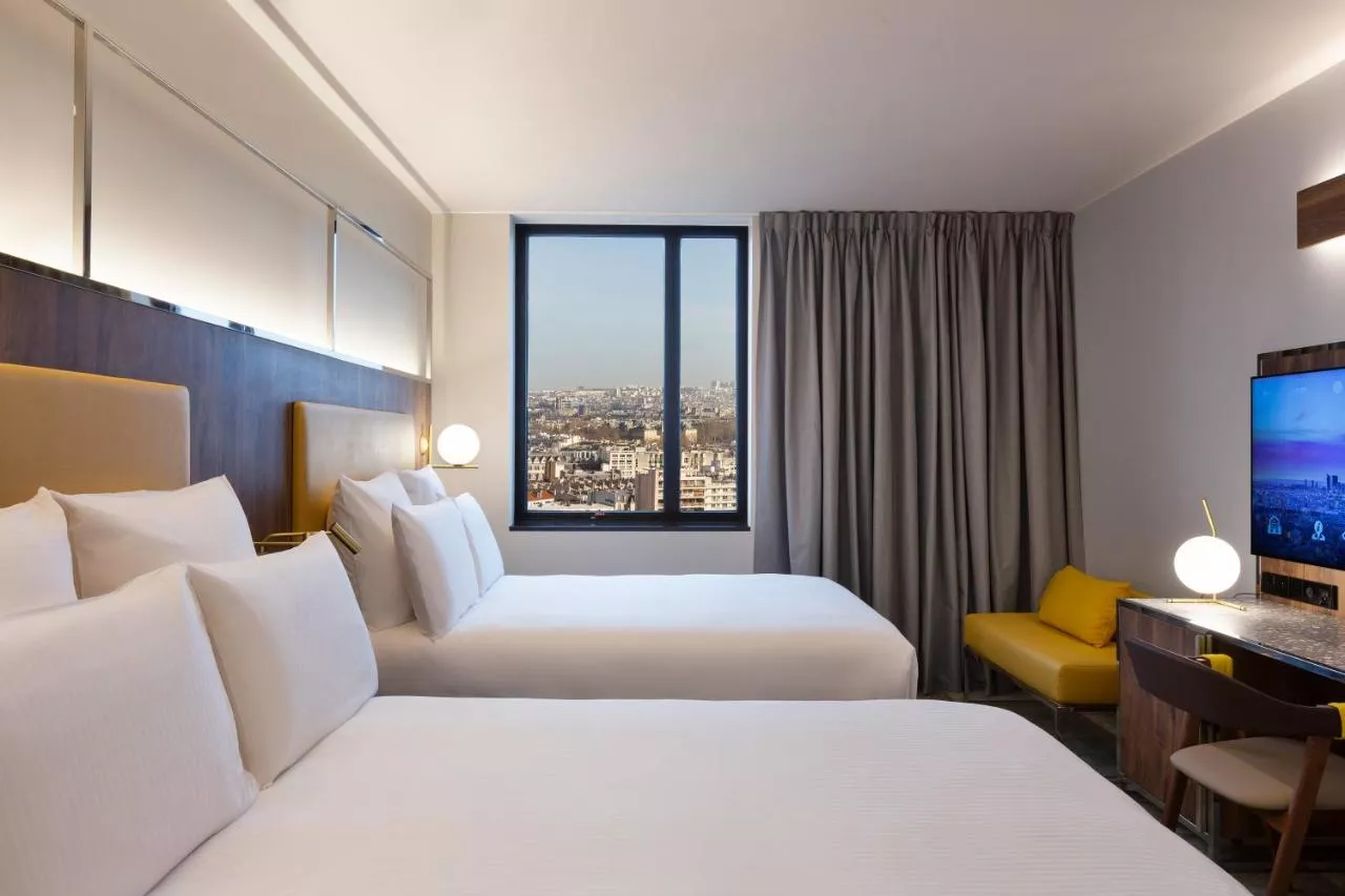 Cameră Deluxe de familie cu 2 paturi duble și vedere la Paris