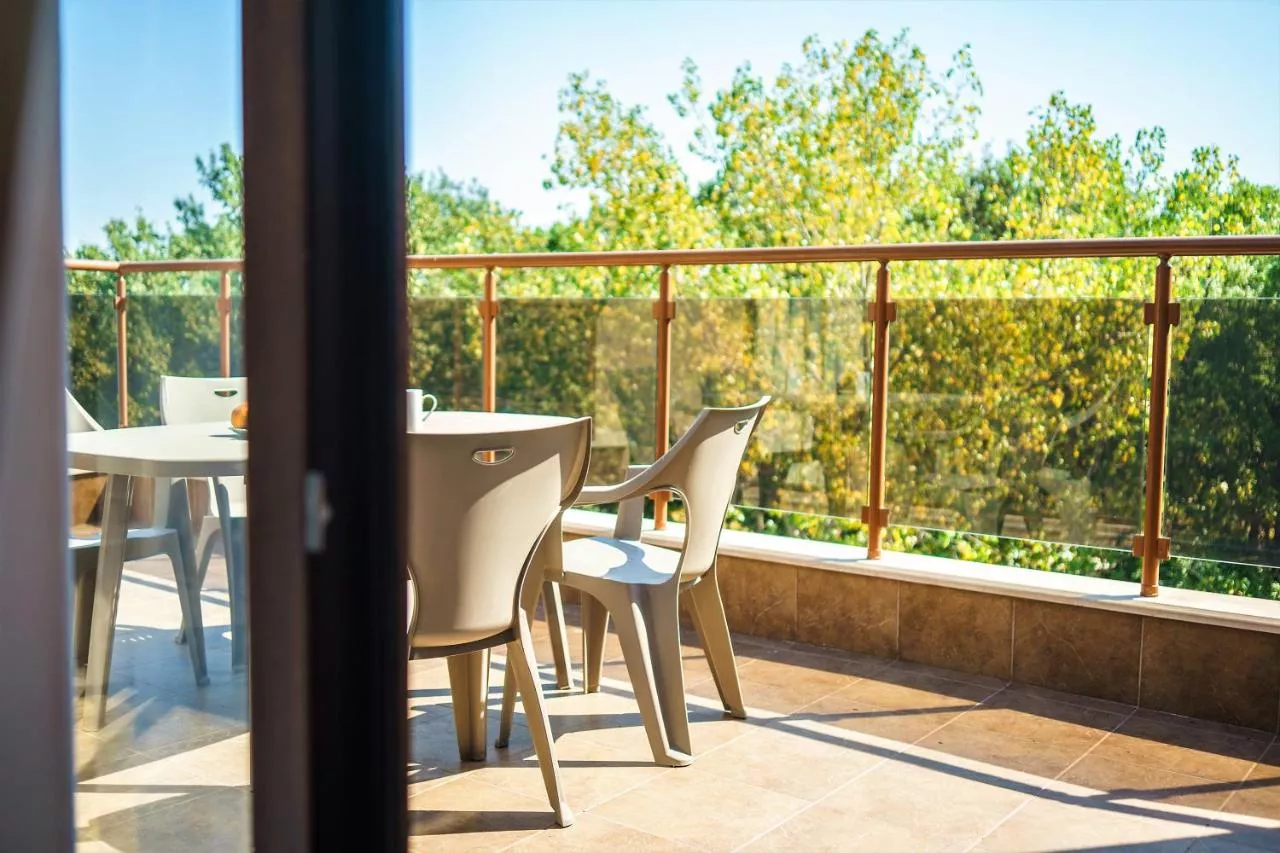 Bucătărie: Masă Frigider Chicinetă Cană fierbător Media/Tehnologie: TV cu ecran plat TV Servicii: Serviciu de trezire Zonă de living: Canapea Zonă de relaxare Zonă de luat masa Vedere: Vedere la piscină Vedere la curtea interioară Facilităţile camerei: uscător de rufe Priză lângă pat Canapea extensibilă Baie: Prosoape Articole de toaletă gratuite Uscător de păr Toaletă Duş Hârtie igienică Baie privată Caracteristicile clădirii: Independentă Exterior: Balcon Dormitor: Lenjerie de pat Garderobă sau dulap General : Pardoseală de gresie/marmură Intrare privată Încălzire Izolare fonică Aer condiţionat Distanțare fizică: Aer condiționat individual pentru fiecare cameră de la proprietate