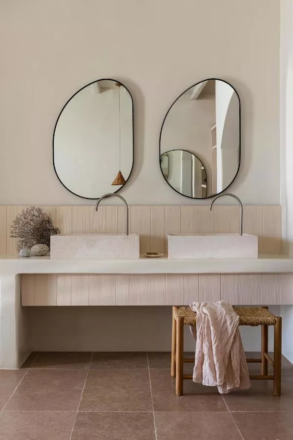 An authentic Mykonian windmill transformed into a 3-level luxury suite, separately located from all other rooms. On the ground floor there is a seating area and a bathroom. Each of the 2 upper floors features a bedroom with sea views.