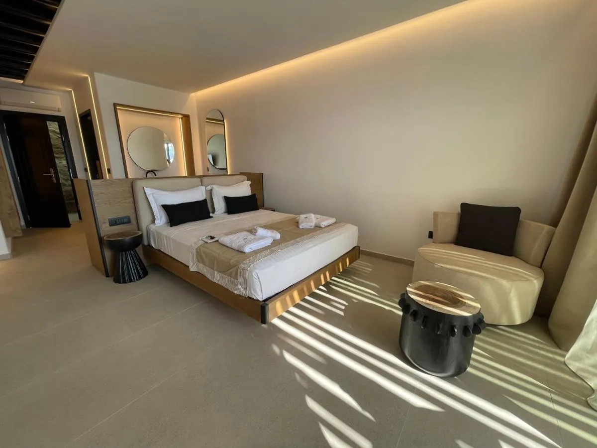 Dimensiuni: 40 mp Numar de camere: 2 camere Fitted with beamed ceilings, built-in beds and white tones, this elegantly decorated suite offers sea view. It includes a seating area and a flat-screen TV with satellite channels, as well as a kitchenette with hobs and a fridge. Free WiFi is available.