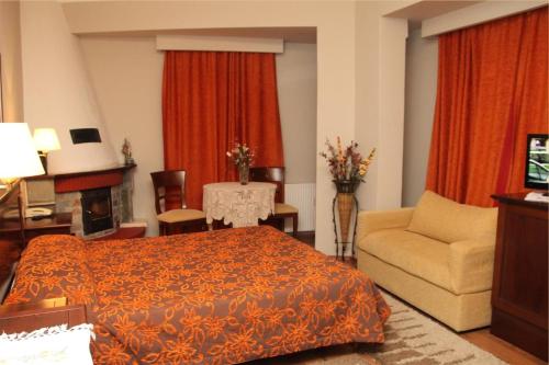Hotelul Mythos este situat printre fagi și castani, la o altitudine de 870 de metri, în Elatochori. Oferă camere și suite cu vederi uluitoare și un restaurant care servește specialități locale.