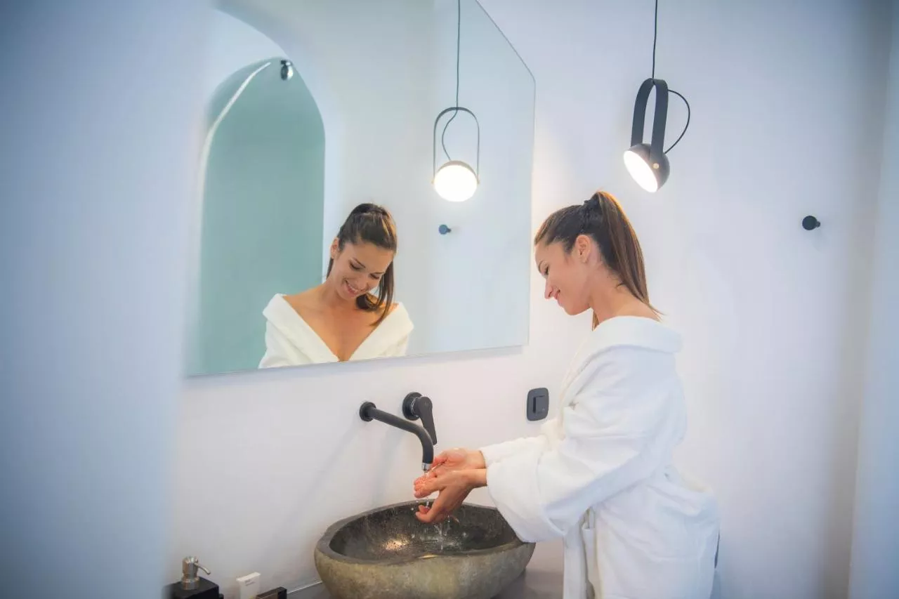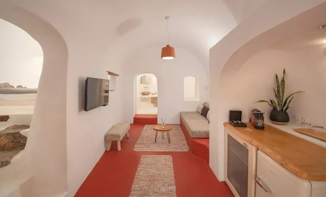 Dimensiuni: 40 mp Numar de camere: 2 camere Featuring an indoor plunge pool, this cave suite includes a balcony, a seating area and a private bathroom equipped with bathrobes and slippers. Baie privată cu duș