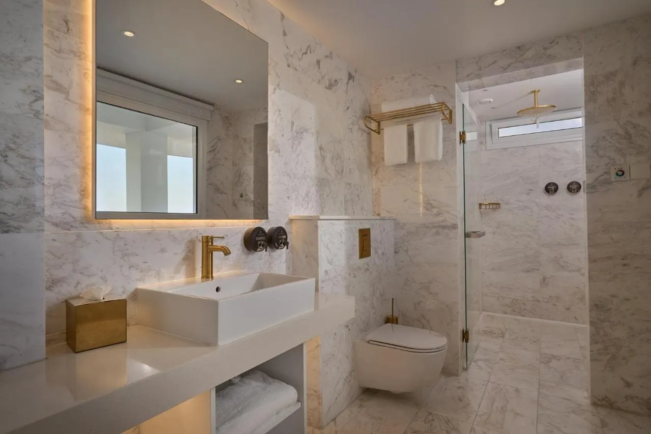 Dimensiuni: 88 mp Numar de camere: 1 camera Deluxe suite has 2 separate bedrooms with Queen size double bed with en-suite bathroom and outdoor hot tub. This suite boasts magnificent sea and Ayia Napa views. It features: