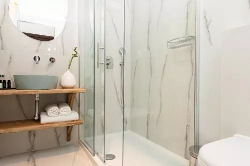 Dimensiuni: 40 mp Numar de camere: 1 camera Featuring a private entrance, this air-conditioned suite is comprised of 1 living room, 1 separate bedroom and 1 bathroom with a walk-in shower and a hairdryer. Boasting a terrace with sea views, this suite also offers soundproof walls and a flat-screen TV with satellite channels. The unit offers 3 beds. Baie privată cu duș