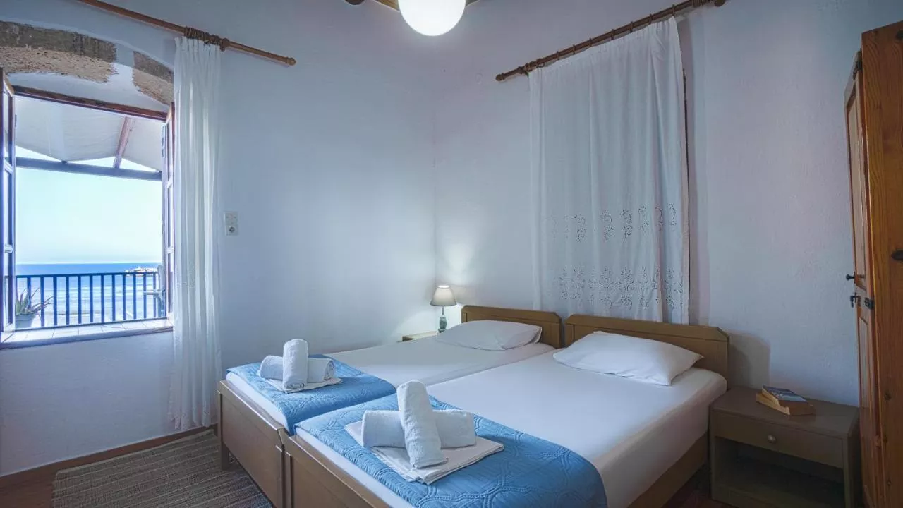 Dimensiuni: 150 mp Numar de camere: 2 camere Featuring 3 separate bedrooms, each with ensuite bathroom, this air-conditioned apartment is split level. Offering views of Loutro Bay from its balcony, it includes: