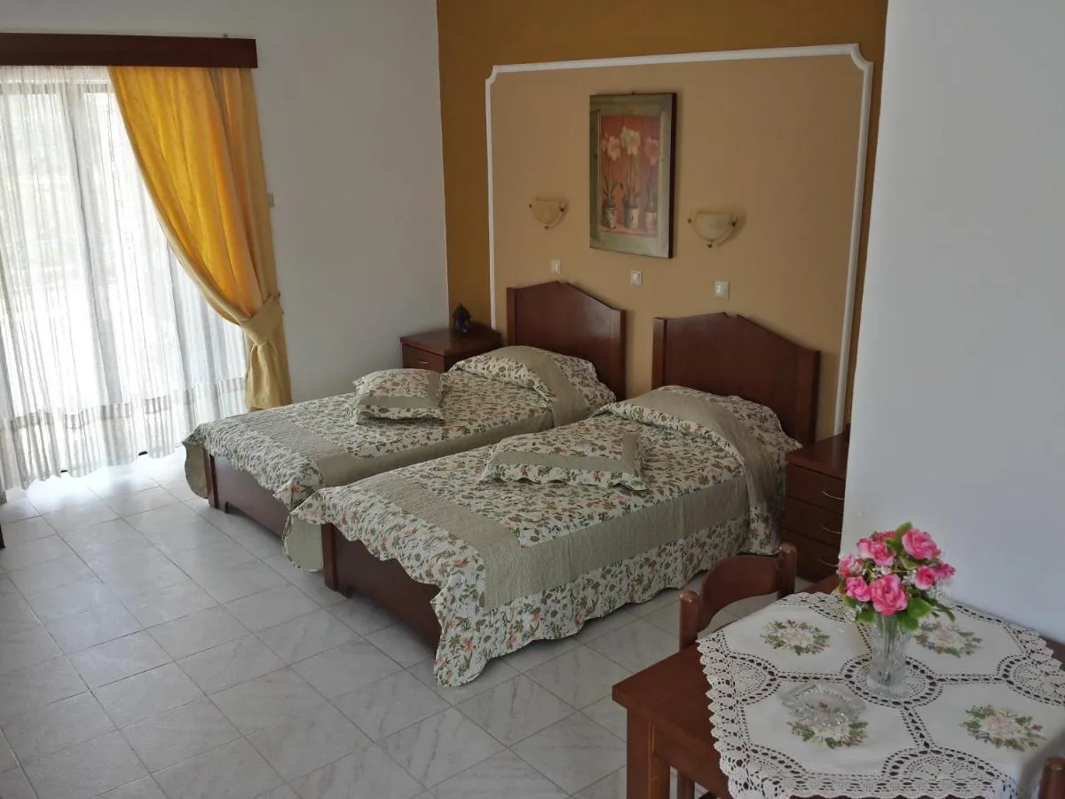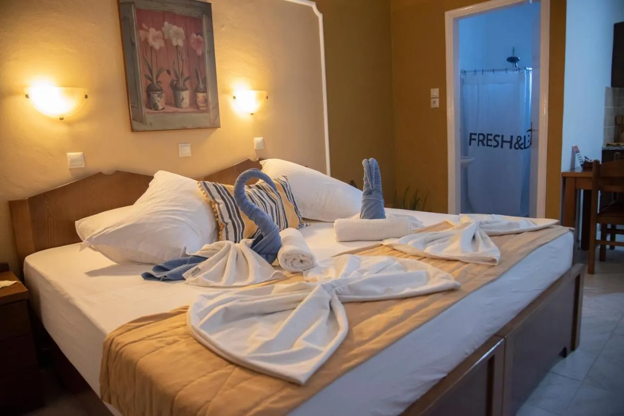 Deschizându-se către două balcoane, studiourile cu aer condiționat de la Nikos sunt dotate cu pardoseli cu gresie și mobilier din lemn închis la culoare. Fiecare unitate are o baie privată și o chicinetă cu zonă de luat masa, frigider și plite de gătit.