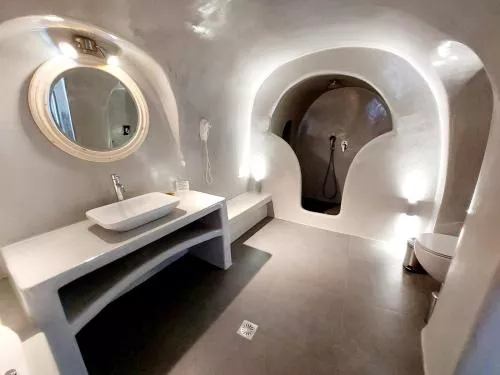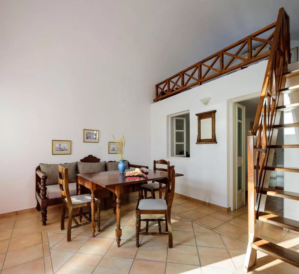 Dimensiuni: 40 mp Numar de camere: 1 camera Apartamentele sunt mai spaţioase şi au, de asemenea, zonă de relaxare cu o canapea extensibilă. Acestea se deschid spre o terasă privată cu vedere la vulcan, la Marea Egee și la asfințit.