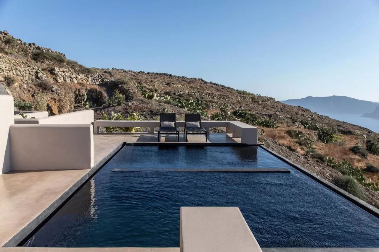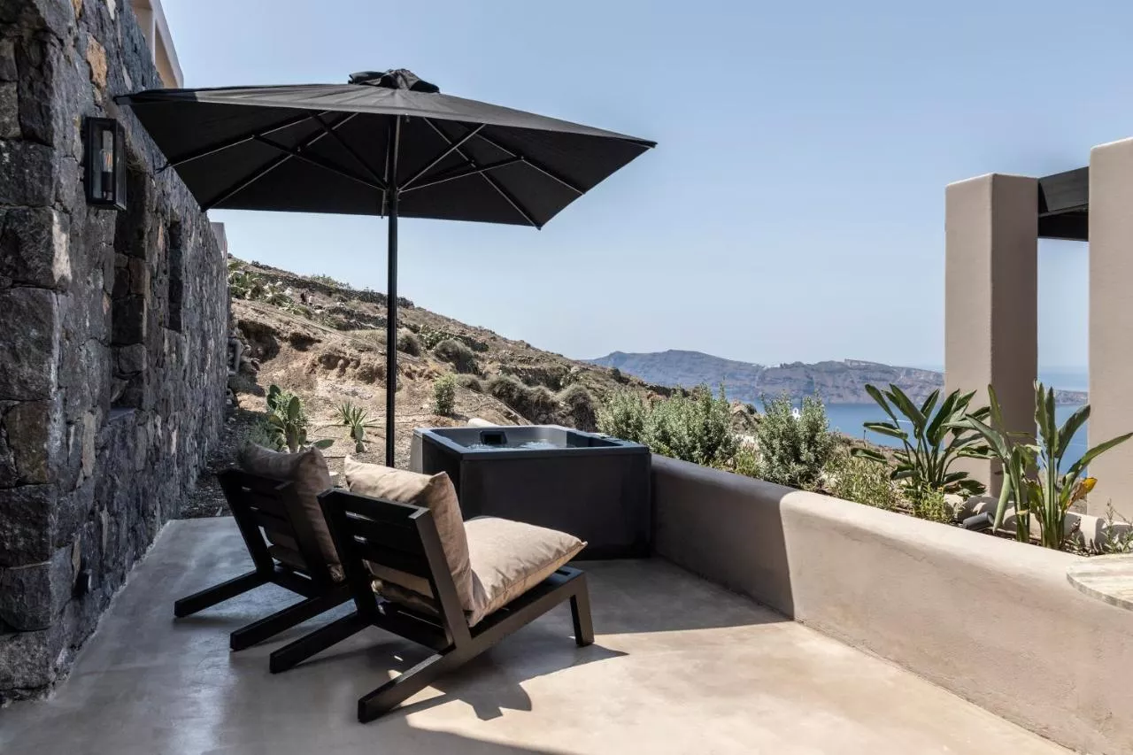 Nimbus Santorini din Oia oferă cazare și o terasă cu vedere la mare.