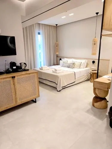 Toate unitățile din hotel sunt dotate cu un aparat de cafea. Având o baie privată cu duș și uscător de păr, unele unități de la Niriides Palace oferă și vedere la mare. Toate camerele oferă oaspeților aer condiționat, un seif și un televizor cu ecran plat.