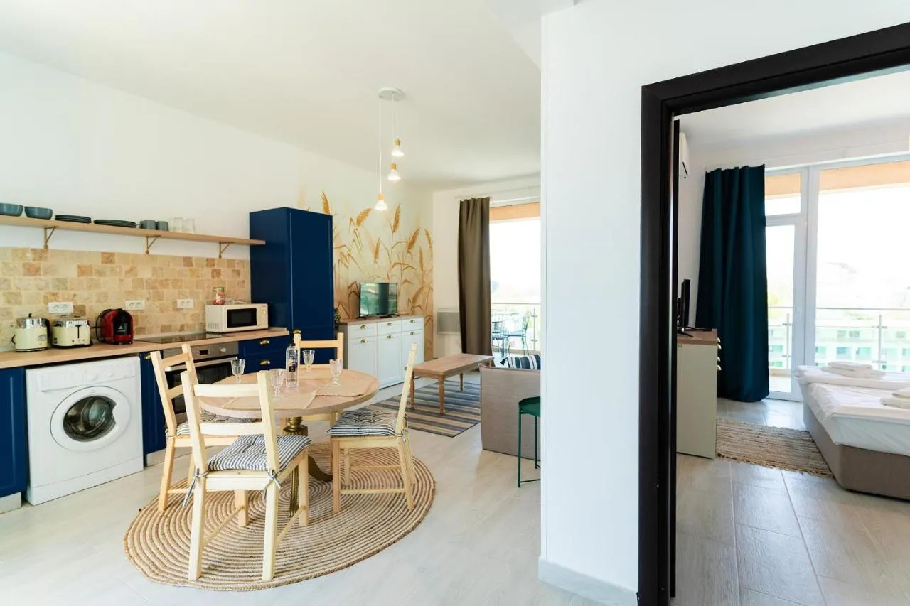 Dimensiuni: 40 mp Numar de camere: 1 camera Acest apartament are living, 1 dormitor separat și 1 baie cu o cadă și articole de toaletă gratuite. Bucătăria complet utilată are plită, frigider, ustensile de bucătărie și cuptor cu microunde. Apartamentul are aer condiționat, TV cu ecran plat și canale prin cablu, aparat de ceai/cafea, zonă de luat masa, dulap și vedere la mare. Unitatea oferă 2 paturi.