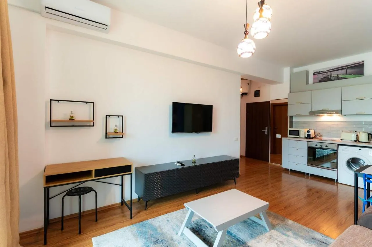 Dimensiuni: 40 mp Numar de camere: 2 camere Acest apartament are living, 1 dormitor separat și 1 baie cu duș tip walk-in și articole de toaletă gratuite. Bucătăria bine utilată include plită, frigider, ustensile de bucătărie și cuptor cu microunde. Apartamentul are aer condiționat, TV cu ecran plat și canale prin cablu, aparat de ceai/cafea, zonă de luat masa, dulap și vedere la oraș. Unitatea este prevăzută cu 2 paturi.