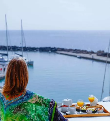Dimensiuni: 22 mp Numar de camere: 4 camere Oferind vedere panoramică la Marea Egee și la portul de agrement de la balcon, această cameră elegantă include 1 pat dublu încorporat și o baie cu duș.