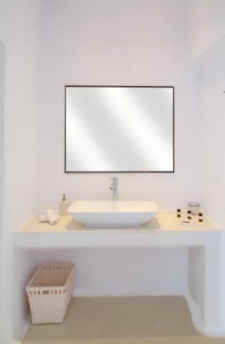 Dimensiuni: 60 mp Numar de camere: 1 camera Suită în plan deschis cu un dormitor, o zonă de relaxare și o baie cu duș și cadă spa separată. Suita are toți pereții din sticlă și un balcon cu șezlonguri, bucurându-se de vedere spectaculoasă la Marea Egee.