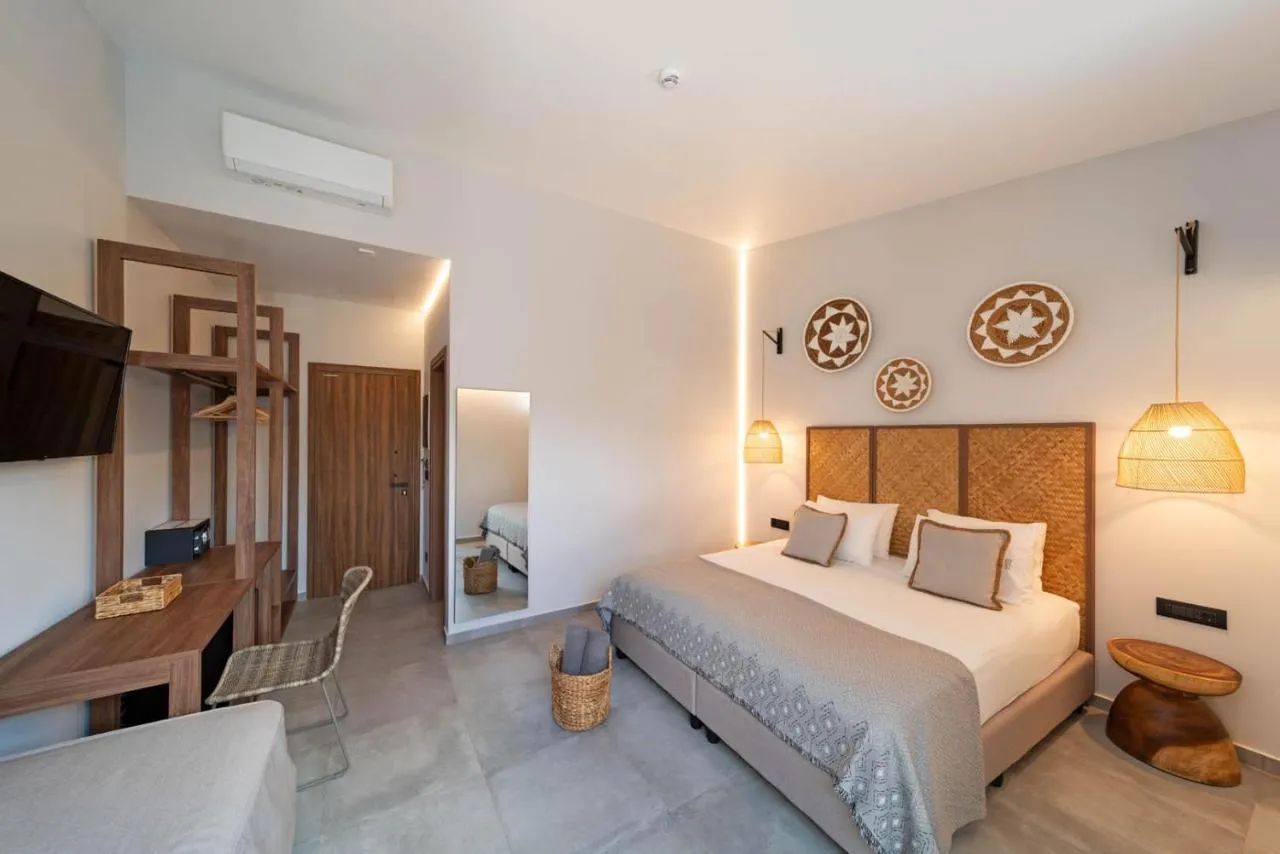 În cadrul hotelului, toate camerele sunt dotate cu un dulap. Complet echipate cu o baie privată cu duș și uscător de păr, unitățile de la Hotelul Oasis Prasonisi dispun de un televizor cu ecran plat și aer condiționat, iar anumite camere vă vor oferi un balcon. Camerele pun la dispoziția oaspeților un frigider.