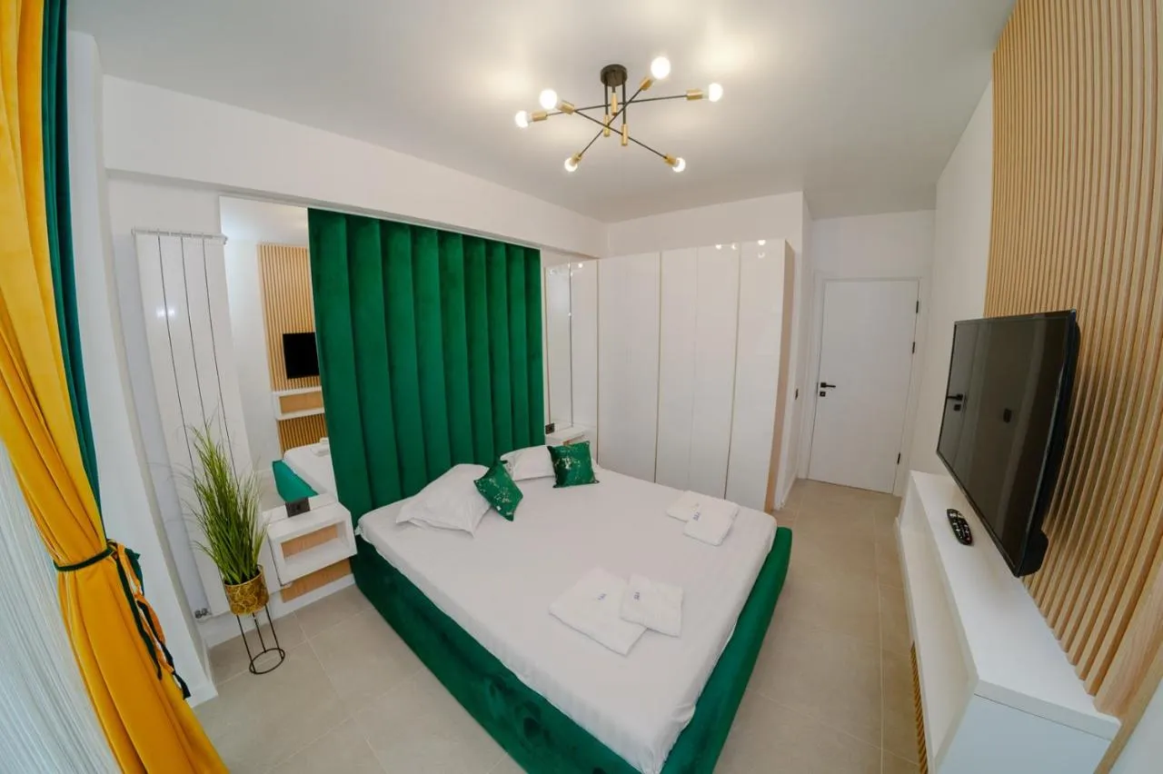 Dimensiuni: 65 mp Numar de camere: 2 camere Guests will have a special experience as this apartment features a pool with a view and a sauna. This spacious apartment is comprised of 1 living room, 1 separate bedroom and 1 bathroom with a walk-in shower and free toiletries. In the kitchen, guests will find a stovetop, a refrigerator, a dishwasher and kitchenware. The air-conditioned apartment offers a flat-screen TV with satellite channels, a washing machine, a private entrance, soundproof walls as well as an inner courtyard view. The unit offers 2 beds.