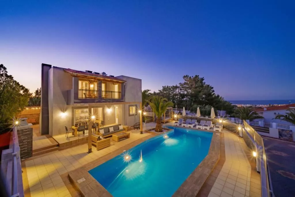 Vila Omega se mândrește cu un balcon cu vedere la grădină, o piscină în aer liber și facilități de grătar, fiind situată în Hersonissos, în apropiere de Acvariul Aquaworld și la 2.7 km de plaja Capul Sarandaris. Cazarea cu aer condiționat se află la 2.2 km de plaja Limenas Hersonissou, iar oaspeții beneficiază de parcare privată disponibilă la locație și WiFi gratuit.