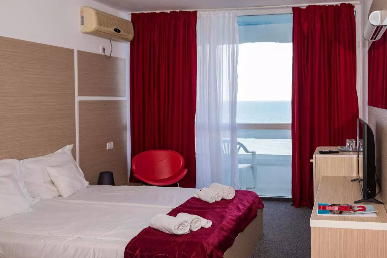 Dimensiuni: 19 mp Numar de camere: 2 camere Această cameră dublă/twin are aer condiționat, TV cu ecran plat cu canale prin cablu, baie privată și balcon cu vedere la mare. Unitatea de cazare este prevăzută cu 1 pat.
