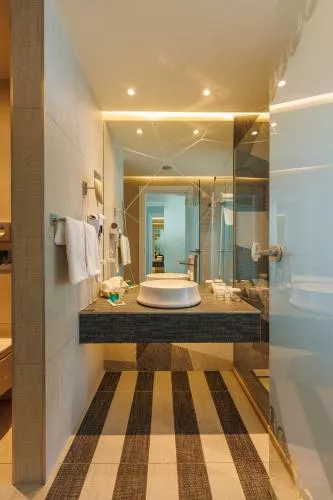 Baie: Halat de baie Prosoape Articole de toaletă gratuite Papuci de casă Cadă sau duş Uscător de păr Toaletă Hârtie igienică Baie privată General : Seif Încălzire Izolare fonică Aer condiţionat Vedere: Vedere la mare Accesibilitate: Etaje superioare accesibile cu liftul Media/Tehnologie: TV cu ecran plat Telefon Canale prin cablu Exterior: Balcon Dormitor: Lenjerie de pat Garderobă sau dulap Mâncăruri și băuturi: Minibar Bucătărie: Uscător de haine