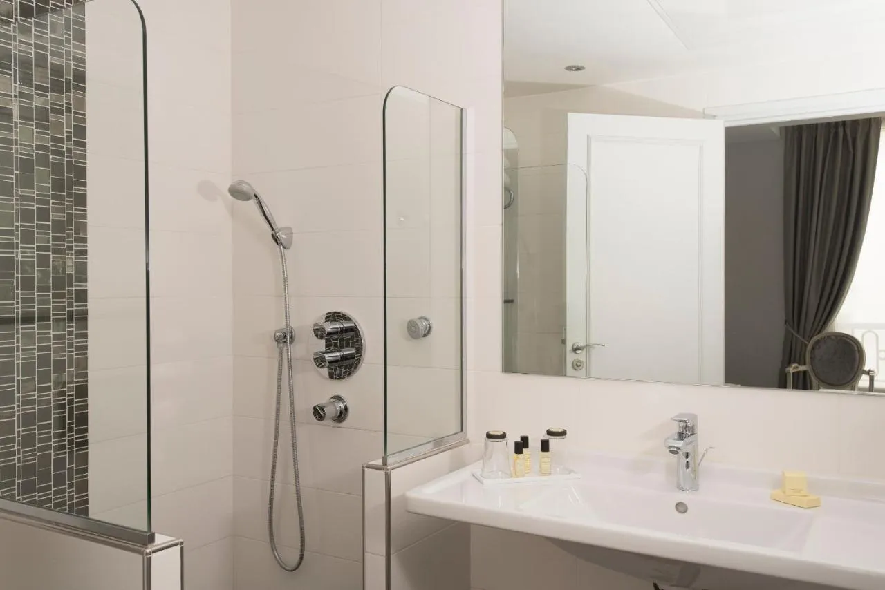 Baie: Halat de baie Prosoape Articole de toaletă gratuite Papuci de casă Uscător de păr Toaletă Duş Hârtie igienică Cadă Baie privată Bucătărie: Mașină de cafea Cană fierbător General : Seif Fier de călcat Facilităţi de călcat Presă pentru călcat pantaloni Încălzire Izolare fonică Aer condiţionat Accesibilitate: Etaje superioare accesibile cu liftul Media/Tehnologie: TV cu ecran plat TV Telefon Canale prin cablu Canale prin satelit Dormitor: Paturi extra lungi (> 2 metri) Lenjerie de pat Dressing Garderobă sau dulap Servicii: Serviciu de trezire Facilităţile camerei: Priză lângă pat Vedere: Vedere la curtea interioară Vedere la oraș Mâncăruri și băuturi: Aparat pentru prepararea de ceai/cafea Minibar Distanțare fizică: Aer condiționat individual pentru fiecare cameră de la proprietate Curățenie și dezinfectare: Dezinfectant pentru mâini