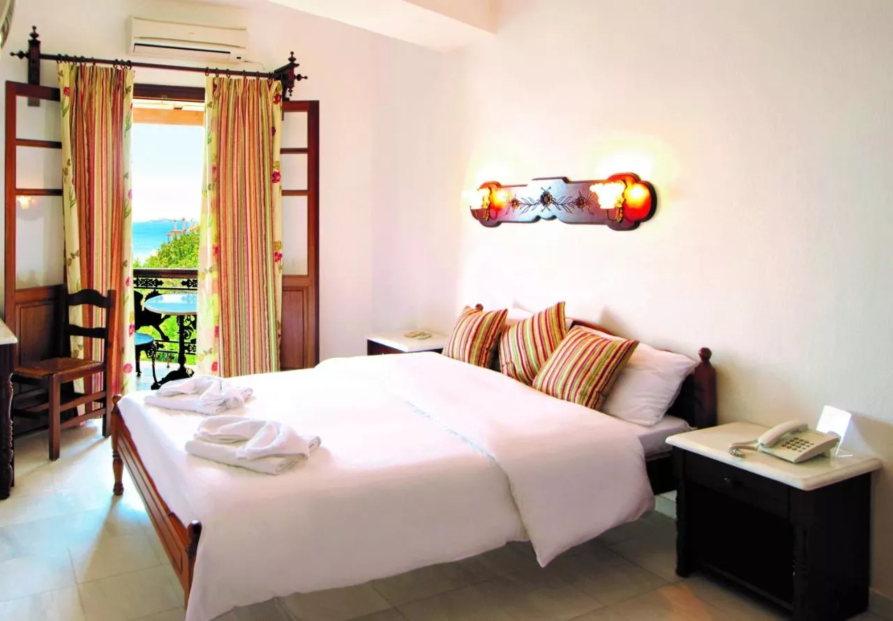 Air-conditioned, top-floor room with balcony and Aegean Sea views. It comes with: