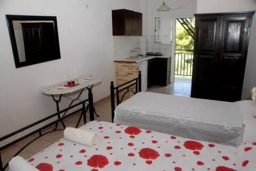 Toate studiourile și apartamentele cu aer condiționat au o chicinetă cu 2 plite de gătit, un frigider și o cafetieră. Dotate cu paturi de fier sau cu tavan cu grinzi și pereți colorați, fiecare include o baie privată. Unele unități oferă vedere la Marea Ionică.