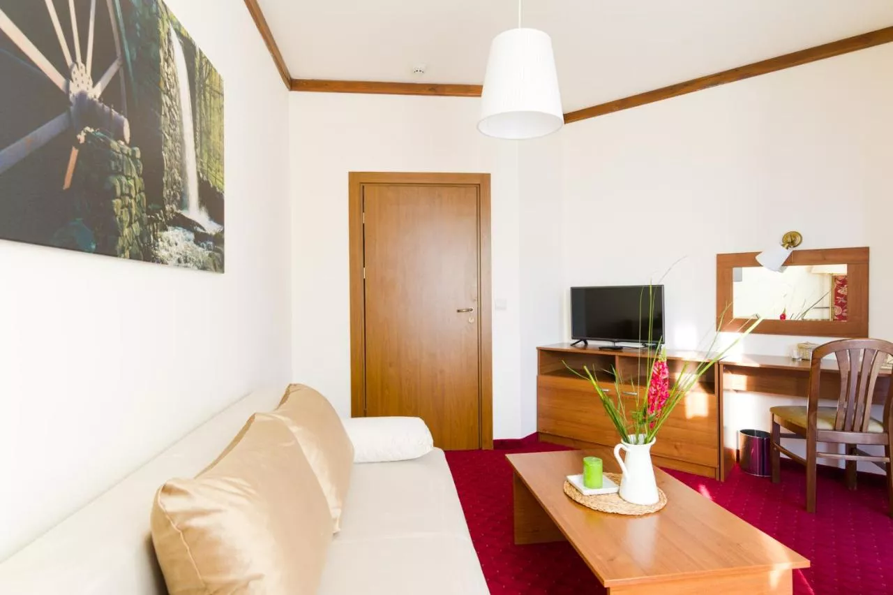 Baie: Halat de baie Prosoape Articole de toaletă gratuite Papuci de casă Uscător de păr Prosoape/lenjerie de pat contra cost Toaletă Baie suplimentară Duş Hârtie igienică Baie privată General : Seif Pardoseală de lemn sau parchet Încălzire Bucătărie: Masă Frigider Cană fierbător Accesibilitate: Etaje superioare accesibile cu liftul Media/Tehnologie: TV cu ecran plat TV Telefon Canale prin satelit Servicii: Serviciu de trezire Vedere: Vedere la munte Vedere la grădină Vedere la râu Zonă de living: Canapea Zonă de relaxare Zonă de luat masa Exterior: Terasă Balcon Facilităţile camerei: Priză lângă pat Canapea extensibilă Dormitor: Lenjerie de pat Dressing Garderobă sau dulap Curățenie și dezinfectare: Dezinfectant pentru mâini