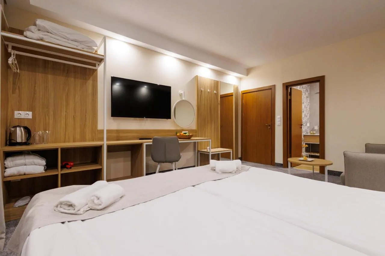 General : Seif Încălzire Accesibilitate: Etaje superioare accesibile cu liftul Media/Tehnologie: TV cu ecran plat TV Telefon Canale prin satelit Servicii: Serviciu de trezire Zonă de living: Canapea Zonă de relaxare Baie: Prosoape Articole de toaletă gratuite Papuci de casă Uscător de păr Prosoape/lenjerie de pat contra cost Toaletă Duş Hârtie igienică Baie privată Facilităţile camerei: Priză lângă pat Pat pliant Vedere: Vedere la grădină Bucătărie: Frigider Dormitor: Lenjerie de pat Dressing Garderobă sau dulap Curățenie și dezinfectare: Dezinfectant pentru mâini