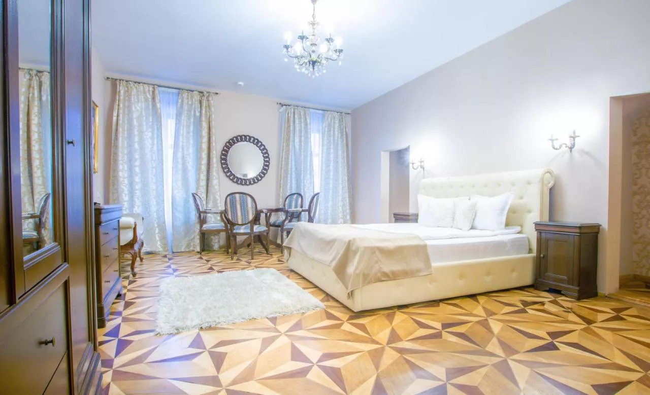 Dimensiuni: 60 mp Numar de camere: 8 camere Această suită spațioasă are 2 dormitoare și 1 baie cu duș sau cadă și articole de toaletă gratuite. De asemenea, suita are TV cu ecran plat cu canale prin cablu, ceainic electric și șifonier. Oaspeții beneficiază de vin/șampanie. Unitatea de cazare include 2 paturi. Baie privată cu cadă sau duș