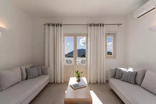 Toate camerele sunt climatizate și au un balcon cu vedere la grădina bine îngrijită sau la Marea Egee. Facilitățile includ un televizor cu satelit și un minibar. Fiecare baie privată este dotată cu un duș cu efect de ploaie sau o cadă și un uscător de păr.