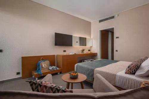 Dimensiuni: 70 mp Numar de camere: 2 camere Această suită de familie are living, dormitor separat și terasă privată cu șezlonguri. Baie privată cu cadă