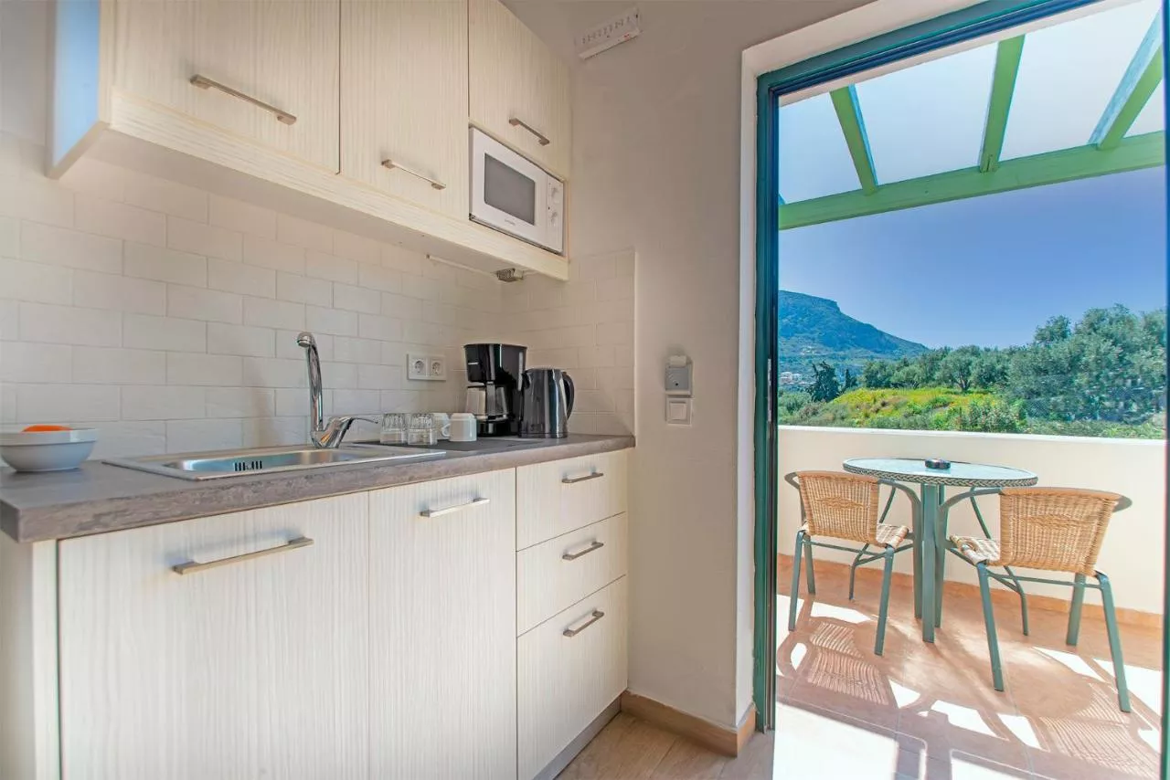Dimensiuni: 38 mp Numar de camere: 1 camera Featuring a separate bedroom, this apartment has also a kitchenette with a mini oven, 2 cooking rings and a fridge. It opens to a terrace with garden or sea view. Free WiFi is provided.