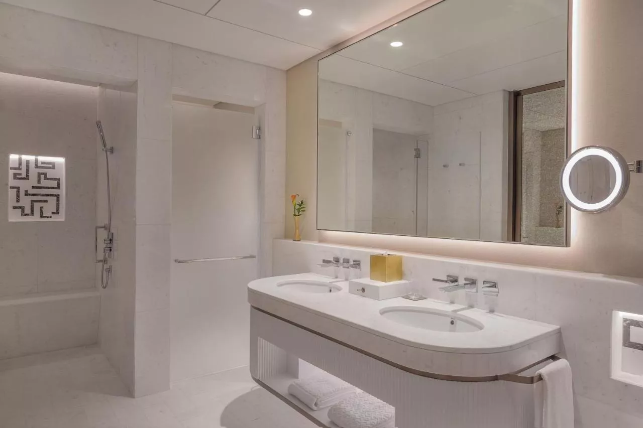 St. Regis Dubai, The Palm oferă servicii personalizate, ritualuri renumite și oferte culinare excepționale. Cele 264 de camere de oaspeți luxoase și 26 de suite elegante oferă un confort luxuriant și vederi panoramice asupra Palm Jumeirah, Golfului Arab și orizontului Dubaiului prin ferestrele de la podea la tavan.