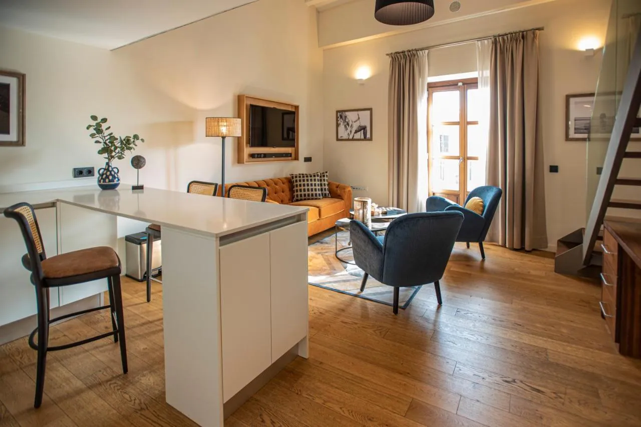 Dimensiuni: 45 mp Numar de camere: 3 camere This suite features 1 living room, 1 separate bedroom and 1 bathroom with a shower and free toiletries. Guests can make meals in the kitchen that has a stovetop, a refrigerator, a dishwasher and kitchenware. The suite has parquet floors, a seating area with a flat-screen TV with satellite channels, air conditioning, soundproof walls, as well as a tea and coffee maker. The unit has 3 beds.