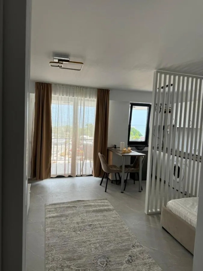 Dimensiuni: 40 mp Numar de camere: 2 camere The air-conditioned apartment features 1 bedroom and 1 bathroom with a shower and a hairdryer. The apartment's kitchen, which has a refrigerator and kitchenware, is available for cooking and storing food. Featuring a terrace with sea views, this apartment also offers a washing machine and a flat-screen TV. The unit offers 2 beds.