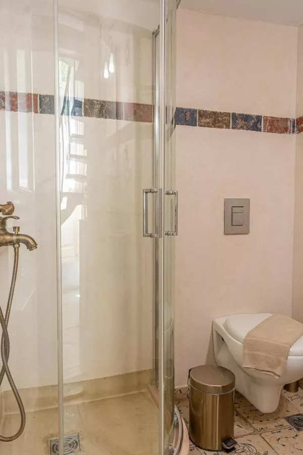 Dimensiuni: 45 mp Numar de camere: 1 camera Traditionally decorated suite with living room, kitchenette with fridge and lavish marble bathroom. Baie privată cu duș