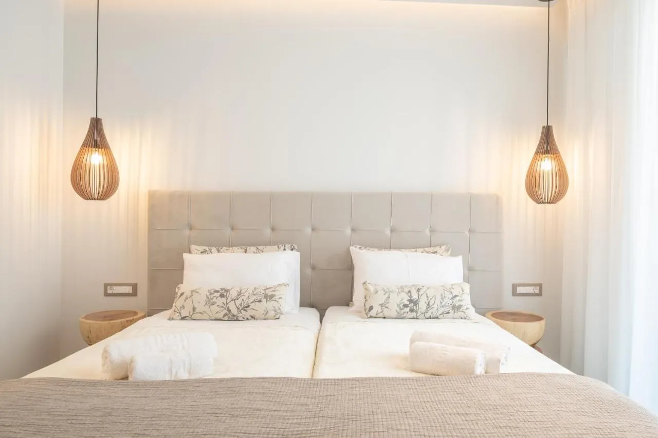 Proprietatea constă în doar 8 studiouri open-plan și cazare. Fiecare studio dispune de un spațiu de dormit cu două paturi, o baie proprie cu duș, o chicinetă și un balcon. Apartamentele sunt mai spațioase și au zone separate de dormit și de relaxare.