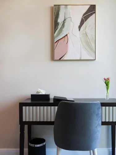 Baie: Halat de baie Prosoape Articole de toaletă gratuite Papuci de casă Uscător de păr Toaletă Duş Hârtie igienică Baie privată General : Detector de monoxid de carbon Seif Fier de călcat Încălzire Izolare fonică Aer condiţionat Bucătărie: Masă Accesibilitate: Etaje superioare accesibile cu liftul Media/Tehnologie: TV cu ecran plat TV Telefon Canale prin cablu Servicii: Serviciu de trezire Facilităţile camerei: Priză lângă pat Mâncăruri și băuturi: Aparat pentru prepararea de ceai/cafea Minibar Exterior: Balcon Dormitor: Lenjerie de pat Garderobă sau dulap Distanțare fizică: Aer condiționat individual pentru fiecare cameră de la proprietate