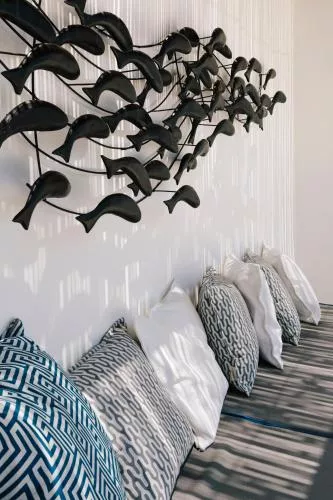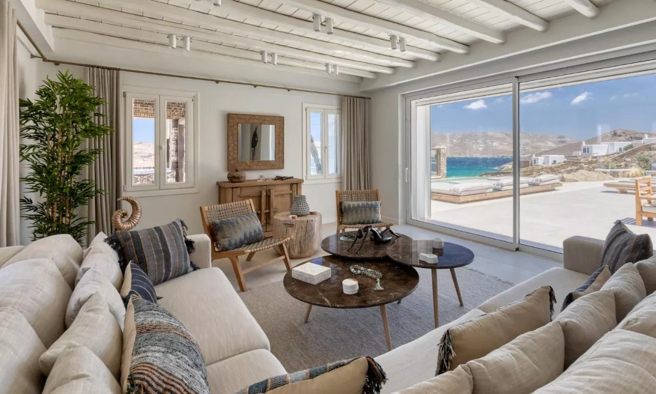 The Etesian 7 Bedroom Private Pool Villa consists of 7 suites of 2 persons each and designed for luxury travelers. The villa has 2 pools with infinite sea views, a variety of indoor and outdoor lounging and gathering spaces, a spa, gym, bar and a professional kitchen all in a relaxed and intimate setting.
