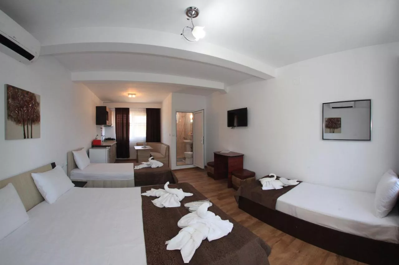 Dimensiuni: 14 mp Numar de camere: 4 camere Această cameră include TV prin cablu, frigider şi fierbător, precum şi baie privată. Unele camere au balcon.