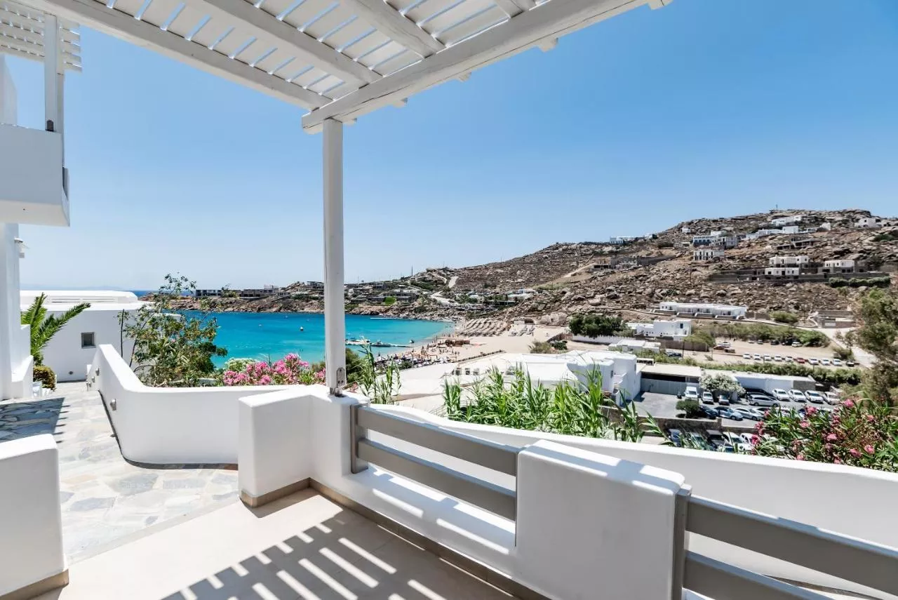 Situat chiar pe celebra plajă Super Paradise, hotelul Super Paradise Rooms, amenajat în stil cicladic, oferă camere cu aer condiționat și balcon comun mobilat. Acesta include unul dintre cele mai populare baruri de pe plajă din Mykonos și un restaurant.
