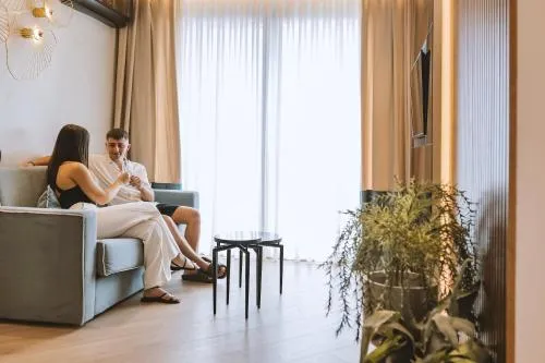 Hotelul Secret Paradise & Spa oferă un bar, o grădină pe acoperiș cu vederi magnifice spre Golful Thermaikos, o sală de fitness și un spa. Se află între dealul verde al Nea Kallikratia și plajă.