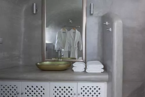 Dimensiuni: 100 mp Numar de camere: 1 camera Featuring a private, heated plunge pool and a spa bath, this elegantly decorated and air-conditioned suite opens to a furnished balcony with Aegean Sea and volcano views. It offers: