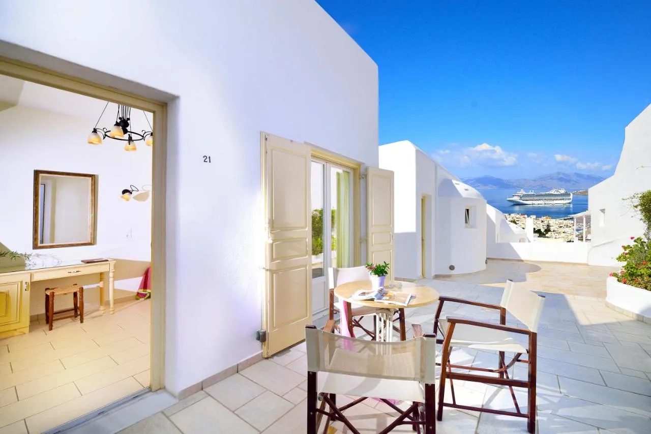 Orașul cosmopolit Mykonos este la o distanță accesibilă pe jos, cu acces ușor la toate magazinele și viața de noapte renumită a Mykonosului. Terminalul de autobuze de la Fabrica, care se află la 5 minute de mers pe jos de la hotel, deservește Platys Gyalos, Psarou, Ornos, Agios Ioannis, Paradise și Paraga. Personalul hotelului poate face aranjamente pentru închirieri de mașini și orice fel de activități. De asemenea, este disponibilă și parcare gratuită, în funcție de disponibilitate.