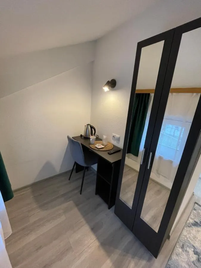 Dimensiuni: 16 mp Numar de camere: 2 camere The double room provides air conditioning, a private entrance, as well as a private bathroom featuring a walk-in shower and a hairdryer. The double room features parquet floors, a seating area with a flat-screen TV, soundproof walls, a tea and coffee maker, as well as a wardrobe. The unit offers 1 bed. Baie privată cu duș
