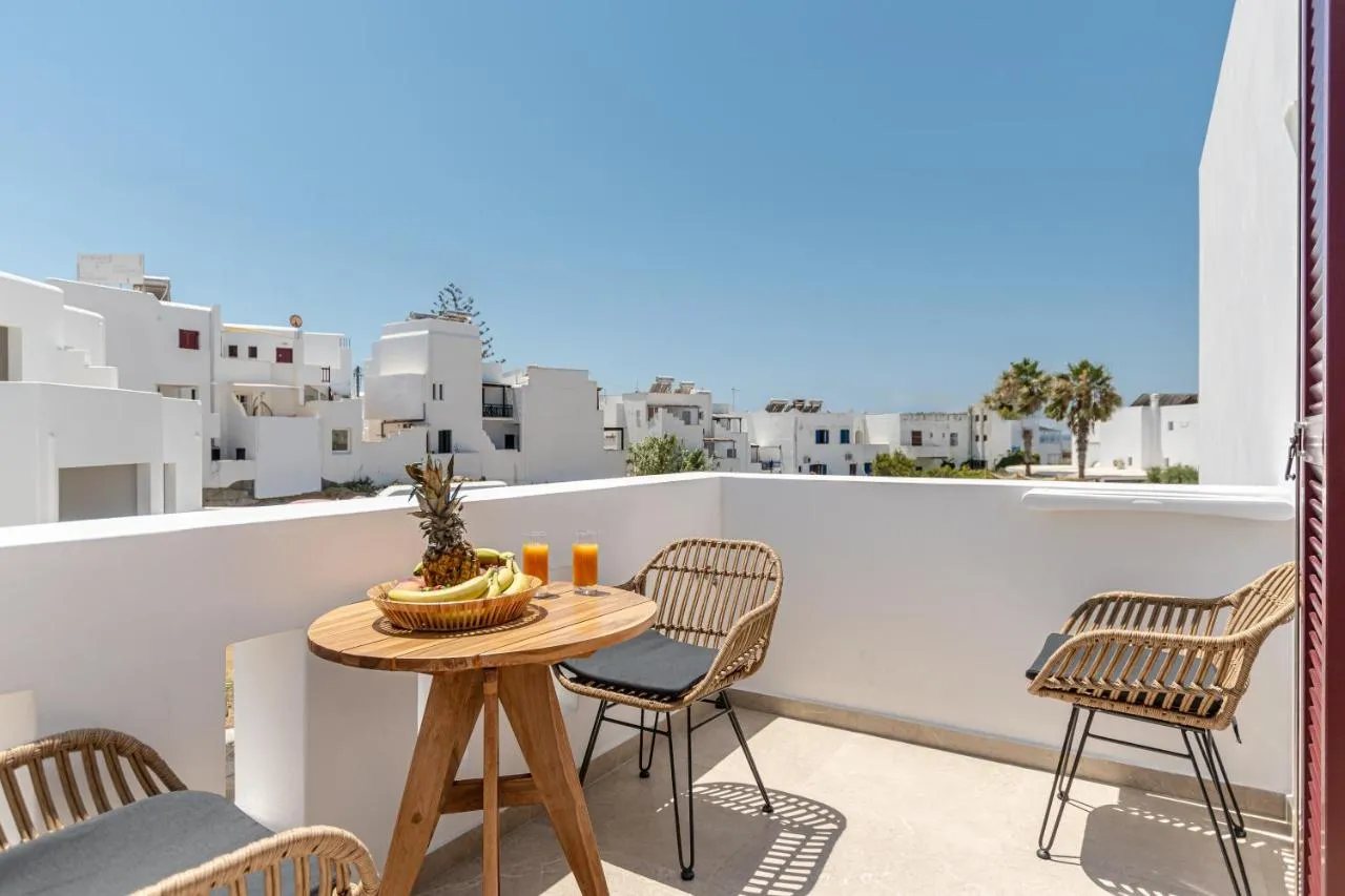 Perla oferă o piscină și camere cu facilități de gătit și acces gratuit la internet. Cunoscuta plajă Agios Prokopios se află la doar 50 de metri distanță, iar aeroportul Naxos este la doar 5 minute de mers cu mașina.