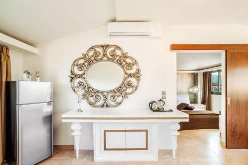 Outdoor & View: Sea view Pool view Accessibility: Upper floors accessible by elevator Media & Technology: Flat-screen TV TV Cable channels Services & Extras: Wake-up service Towels Room Amenities: Sofa Seating Area Socket near the bed Fold-up bed Tile/marble floor Private entrance Sofa bed Wardrobe or closet Soundproofing Air conditioning Hot tub Bathroom: Free toiletries Slippers Hairdryer Toilet Shower Toilet paper Bath Private bathroom Food & Drink: Tea/Coffee maker Refrigerator Physical distancing: Single-room air conditioning for guest accommodation