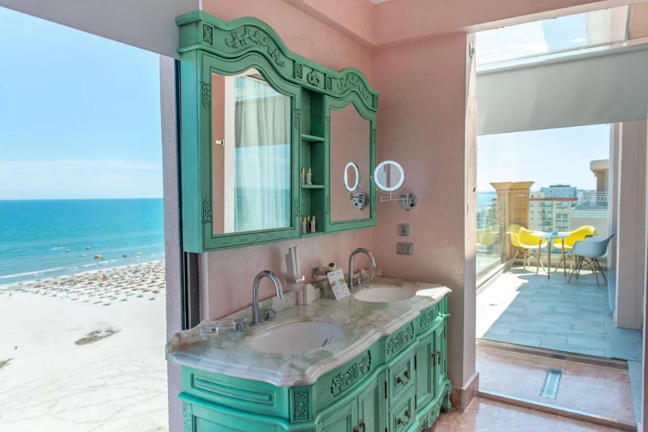 Baie: Halat de baie Articole de toaletă gratuite Papuci de casă Uscător de păr Toaletă Duş Hârtie igienică Baie privată Facilităţile camerei: Seif Pardoseală de lemn sau parchet Canapea Fier de călcat Facilităţi de călcat Priză lângă pat Încălzire Dressing Garderobă sau dulap Aer condiţionat Exterior/Vedere: Vedere la mare Terasă Balcon Accesibilitate: Etaje superioare accesibile cu liftul Media/Tehnologie: TV cu ecran plat TV Telefon Canale prin cablu Servicii/Suplimente: Prosoape Lenjerie de pat Mâncăruri și băuturi: Minibar Cană fierbător