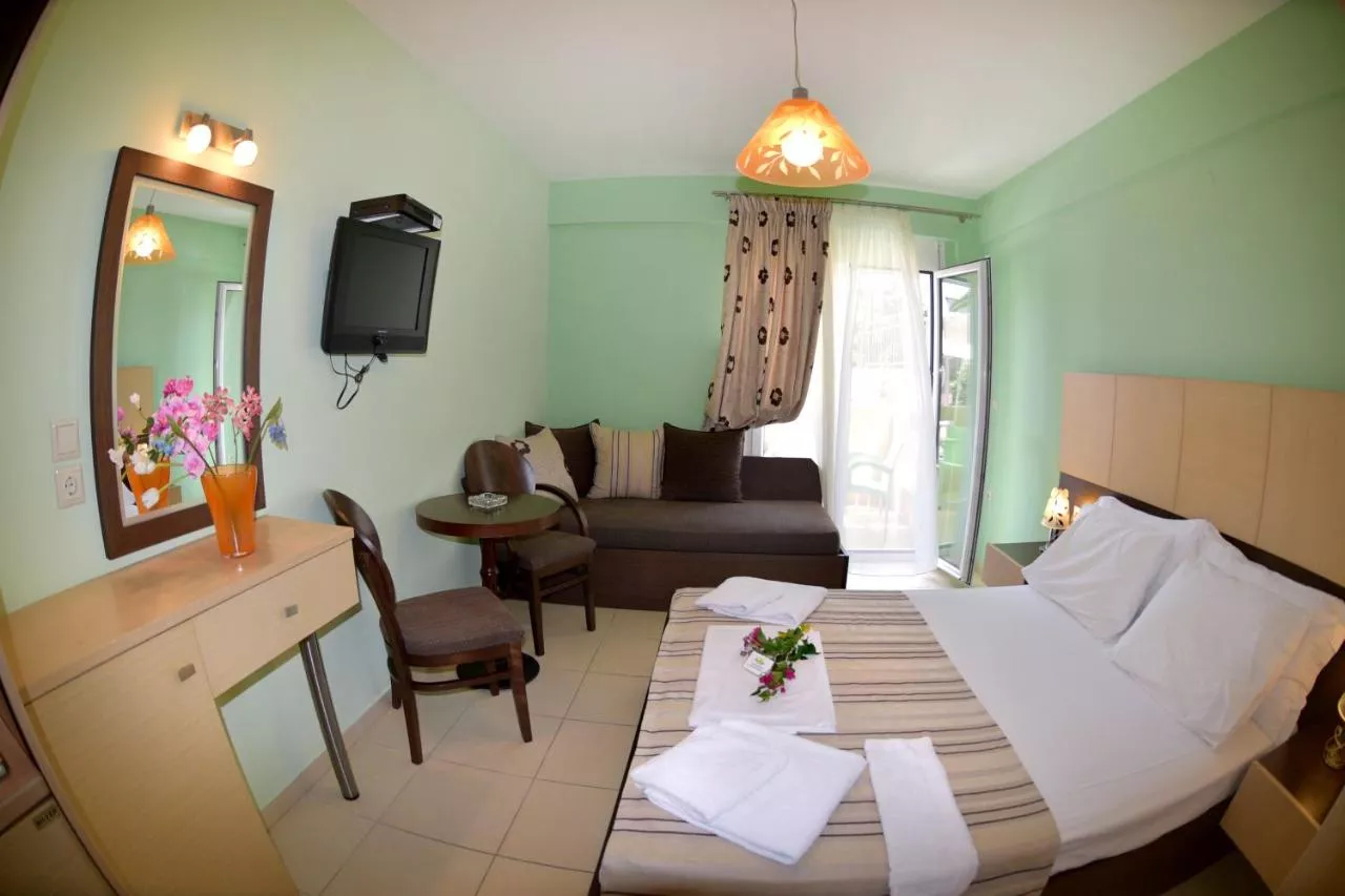 Cu un decor modern în culori pastelate, toate studiourile au o chicinetă cu un frigider mini, plite de gătit și ceainic. Facilitățile includ aer condiționat și un televizor cu canale prin satelit. O cabină de duș și un uscător de păr sunt disponibile în baie.